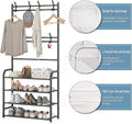 - EASY ASSEMBLY & DISASSEMBLY: This free-standing hanger and shoe rack are easy to assemble. With the help of instruction manuals and tools, you can easily assemble the entire hanger. The hanger has 8 hooks, which can be disassembled freely as needed. All hooks have rounded edges to prevent damage to the clothes.